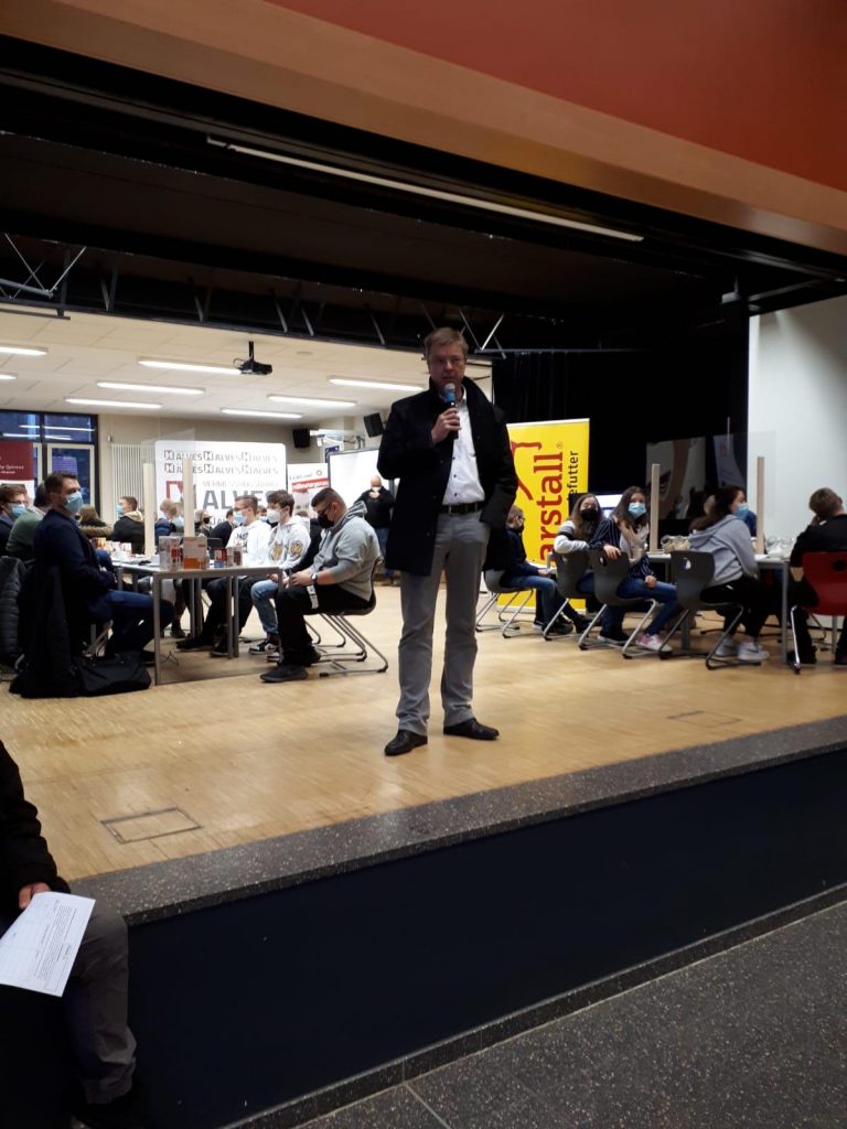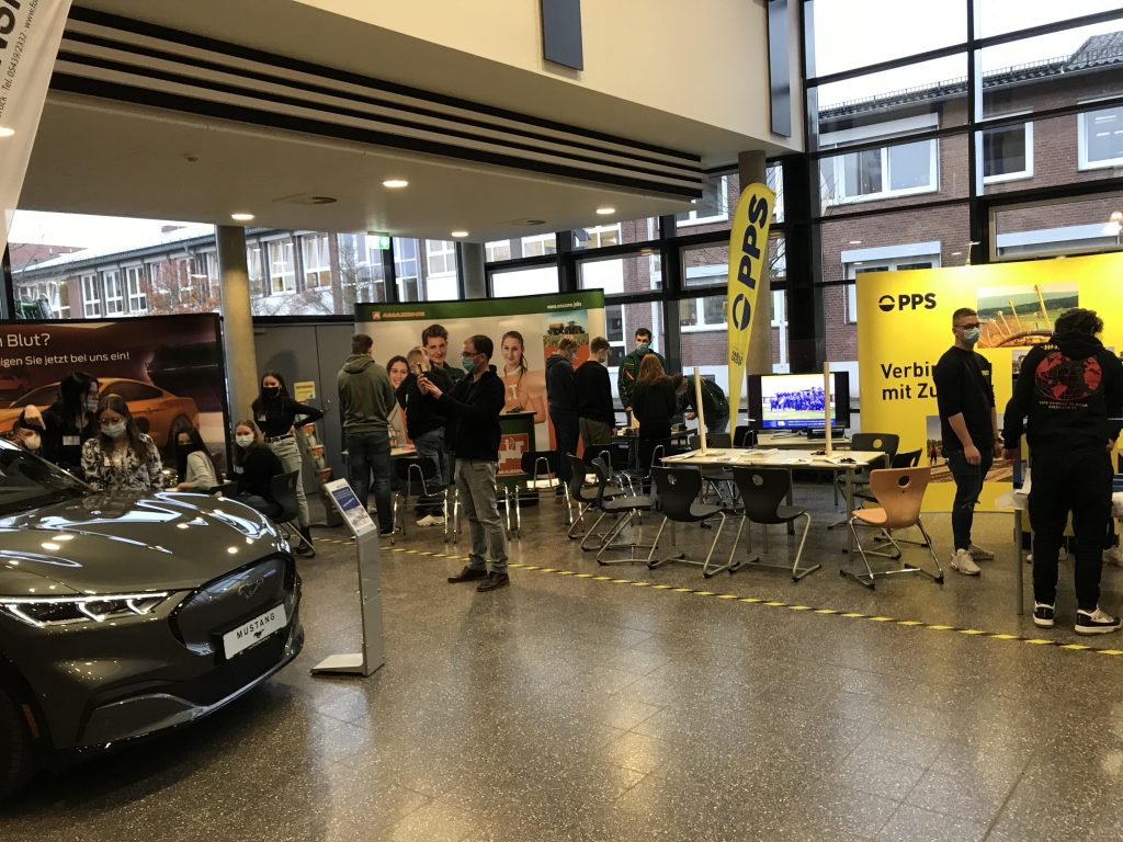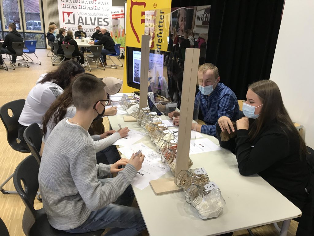 Ein Höhepunkt der Woche war die hauseigene Ausbildungsmesse, die durch den Samtgemeindebürgermeister Michael Wernke am Mittwoch eröffnet wurde. „Ihr könnt eure Zukunft selbst in die Hand nehmen. Nutzt dieses tolle Angebot, um mit unseren Betrieben in Kontakt zu kommen“ so Wernke. Elf regionale und überregionale Betriebe haben ihre Ausbildungsmöglichkeiten vorgestellt. Ford Wernsing, die Heilerziehungsschule Quakenbrück, der Mischfutterspezialist Kreiling, Maler Schulte, PPS, RUF, Ter-Heide und Wurst Stahlbau schickten ihre Ausbildungsbeauftragten in die Schule. Außerdem kam das Vermessungsbüro Alves und die Amazonen Werke als neue Partner hinzu. Das Angebot der Caritas durften die Jugendlichen digital kennenlernen. Alle teilnehmenden Betriebe und Schulangehörigen wurden natürlich täglich auf COVID 19 getestet.