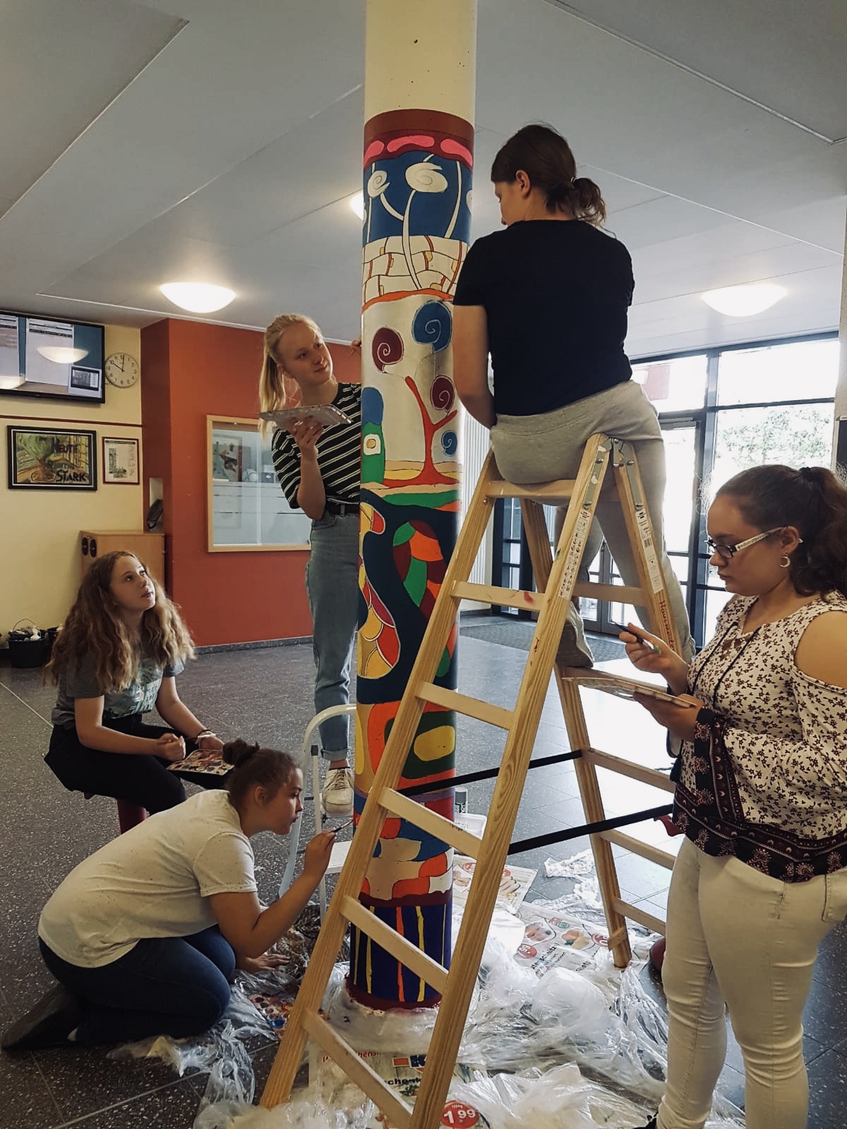 Eine graue Säule mitten im Schulgebäude finden Sie langweilig? Das finden wir auch! Deshalb haben wir, die Schülerinnen und Schüler… Weiterlesen »Hundertwasser meets „School-Art“: AG lässt Säule in neuem Glanz erstrahlen!