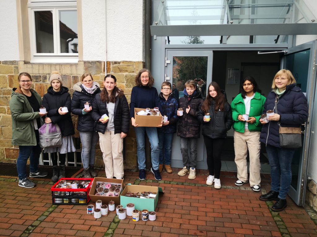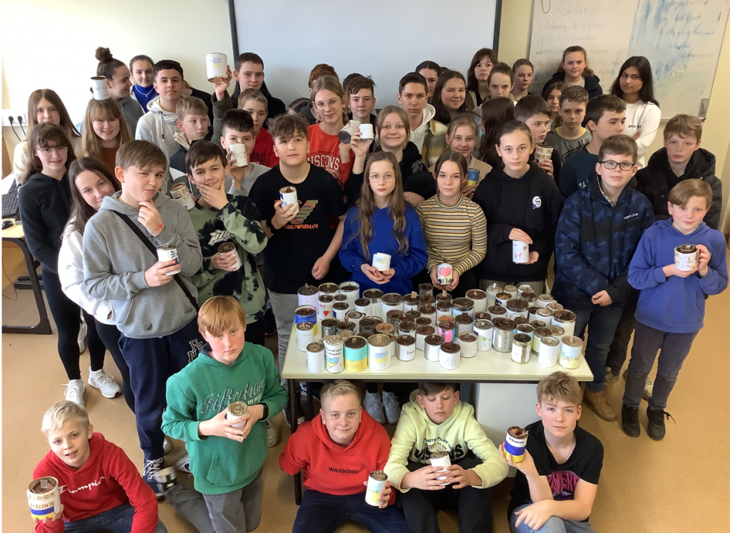 Im Jahrgang 7 haben wir im Werte & Normen und Religionsunterricht an der Aktion „Dosenkerzen für die Ukraine“ mitgemacht. Wir haben aus alten Dosen Kerzen gebastelt, damit die Menschen in der Ukraine sich, oder auch ihr Essen, wärmen können und bei einem Stromausfall Licht haben.