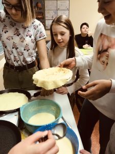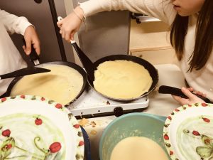 Diese Fragen stellte sich am Mittwoch unser Franzsösisch Wahlpflichtkurs (WPK) des sechsten Jahrgangs. Zusammen mit Frau Middendorf erarbeitete der Kurs zunächst die theoretischen Grundlagen des Deutsch-Französischen-Tags, dem Jahrestag der Unterzeichnung des Élysée-Vertrags. Der damalige Bundeskanzler der Bundesrepublik, Konrad Adenauer, und der französische Staatspräsident Charles de Gaulle unterzeichneten am 22. Januar 1963 im Pariser Élysée-Palast den Freundschaftsvertrag ihrer beiden Länder, Frankreich und Deutschland. In diesem Vertag legten die beiden Länder fest, dass Deutschland und Frankreich sich bei wichtigen Entscheidungen der Außen-, Sicherheits-, Jugend- und Kulturpolitik immer gegenseitig um Rat fragen. Nachdem der Kurs nun diese wichtigen Fragen beantwortet hatte, wurde die Stunde mit einer kleinen französischen Kochstunde abgerundet. Und was bietet sich da besser an, als leckere Crêpes zu backen? Also schnell in die schuleigene Küche, um den Teig vorzubereiten und den Herd anzuschmeißen. „Mhh, lecker diese Crêpes!“ – da war sich der ganze Kurs einig. Zusammen saßen nun alle nett zusammen, aßen ihre französischen Pfannkuchen und ließen diese tolle Unterrichtsstunde ausklingen! 🙂
