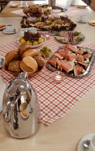 Am Mittwoch vor den Ferien war die Stimmung bei uns in der Schülerfirma ausgelassen. Grund dafür war der Besuch von unseren „zwei alten Schülerfirma-Hasen“, Josef Weissmann und Nadja Stoika. Beide hatten bis zum Eintritt in den Ruhestand im letzten Schuljahr wirklich all ihre Energie und ihr Herzblut in unsere Schülerfirma gesteckt und das neue Leitungsteam (Herr Düvel, Frau Westendorf und Herr Prochotta) bestmöglich eingearbeitet. Nun war es also an der Zeit, die beiden noch einmal fest zu drücken, ein großes „Danke“ auszusprechen und von unserem neuen Team ein leckeres Frühstück vorbereiten zu lassen. Zusammen mit der Schulleitung und unseren beiden helfenden Händen Frau Sander und Frau Martinek wurde lecker und ausgiebig gefrühstückt! 🙂