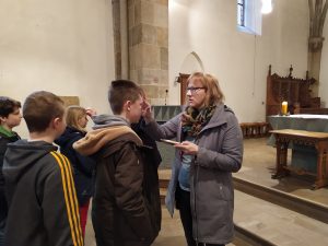 el vorgelesen und auch Fürbitten gehalten. Zum Schluss durften dann alle nach vorne kommen und nach einem alten Brauch der katholischen Kirche das Aschekreuz auf der Stirn empfangen.