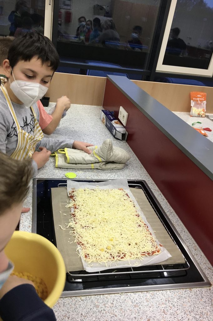 Im ersten Block haben sich die Schülerinnen und Schüler nach Interessen aufteilen können. Die einen sorgten für das leibliche Wohl, indem sie verschiedene Pizzasorten kreierten, die anderen wurden künstlerisch aktiv. Unter der Leitung von der Kunstlehrerin Frau Dr. Roll konnten die Schülerinnen und Schüler ihrer Kreativität freien Lauf lassen oder ein Mandala für die Familienmitglieder gestalten.